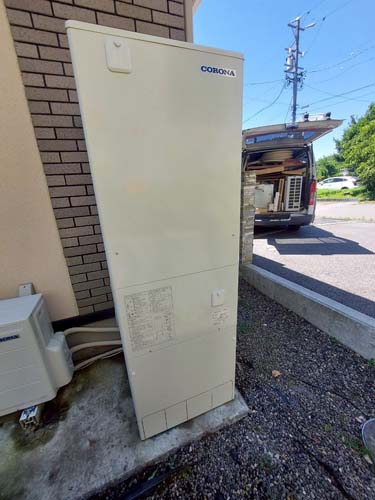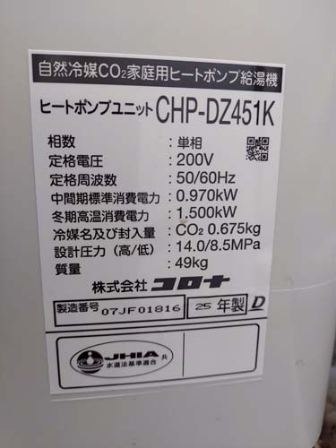足立区千住 コロナ自然冷媒CO2家庭用ヒートポンプ給湯機 ヒートポンプユニットCHP-DZ451K エコキュート交換工事